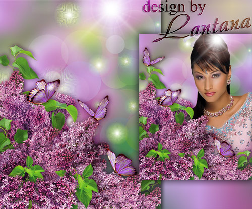 Многослойный PSD исходник для создания коллажей, оформления фото - Сирень и бабочки
