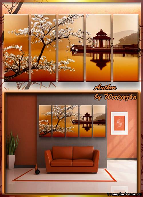 Полиптих в psd формате - Китайская вишня, цветущая сакура