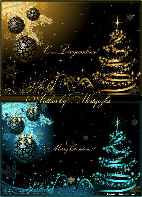 Рождественские PSD Исходники - В сверкающих звездах блещут елки