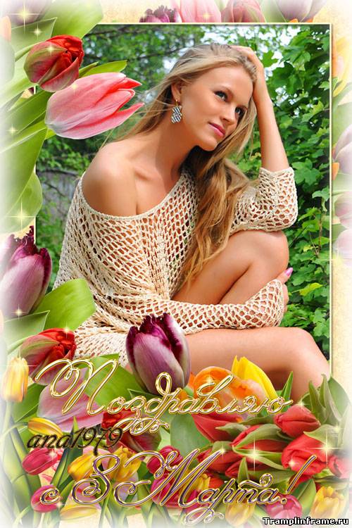 Рамка для фото 8 марта - Пусть расцветает тюльпанами праздник