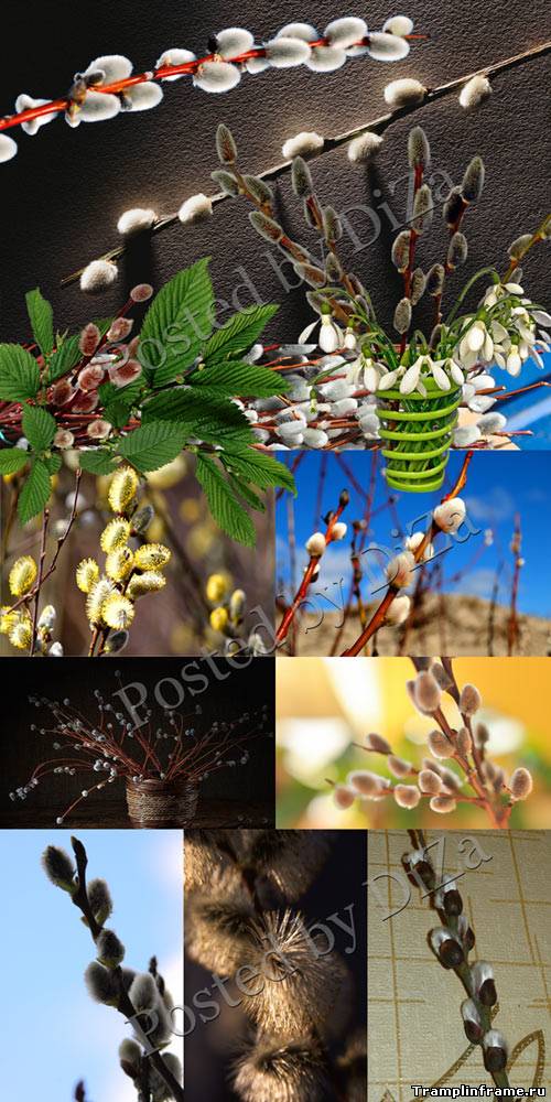 Клипарты в PNG к празднику – Веточки вербы с цветами