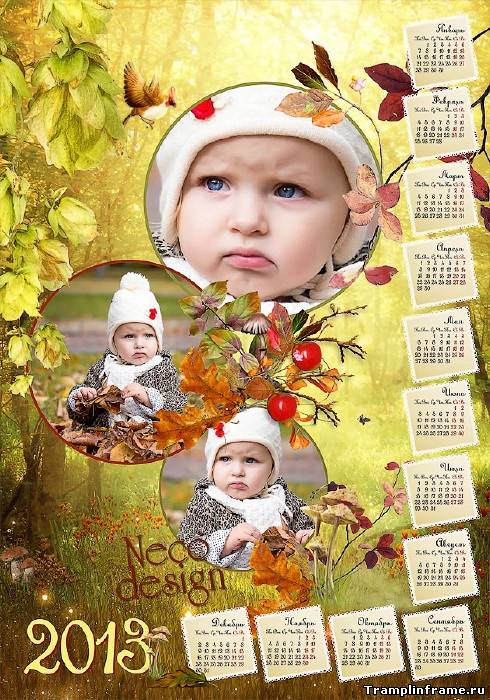 Календарь - рамка на три фотографии на 2013 год - Царство осени