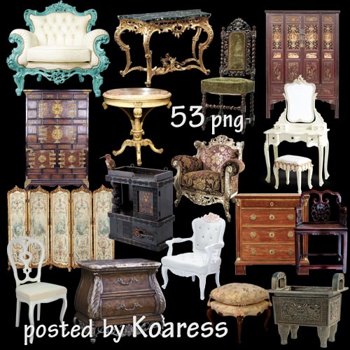 Клипарт на прозрачном фоне - стулья, столы, кресла, диваны, шкафы - старинная и винтажная мебель