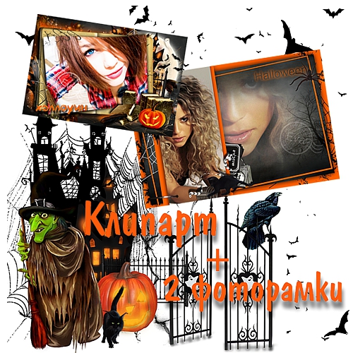 Клипарт в png - Атрибуты, ведьмы, приведения к празднику Halloween
