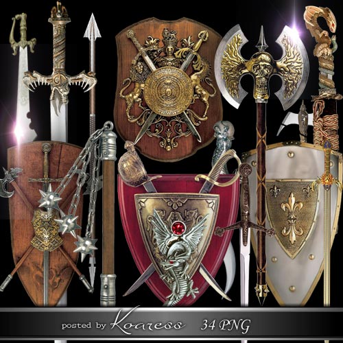 Клипарт на прозрачном фоне - Щиты, мечи, сабли и другое старинное оружие