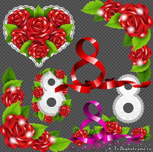 Клипарт - подборка к 8 марта уголки и надписи из роз прозрачный фон