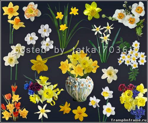 Цветочный клипарт для фотошопа - Жёлтые и белые нарциссы