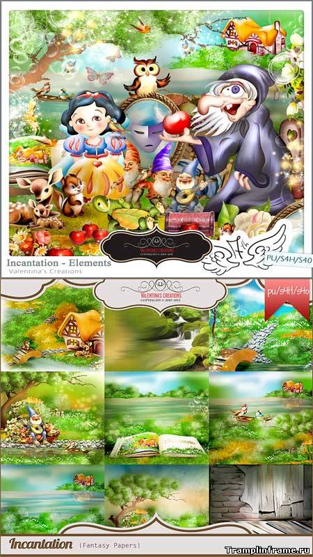 Данный скрап набор поможет Вам красиво оформить сказочные композиции, детские альбомы, календари и открытки. Много красивых рисованых элементов это - сказочные принцессы, веселые гномы с балалайками, яркие птицы, белки, корзины с цветами, сказочные домики, деревья и ещо много...