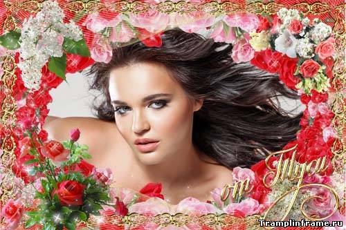 Цветочная женская фоторамка - Цветы красою взгляд ласкают